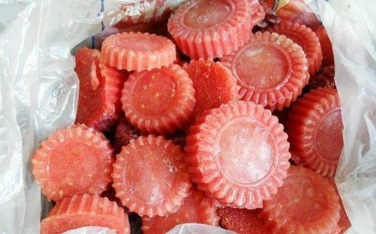 C помидорок снять шкурку, перекрутить в блендере и переложить в формочки на 2 часа в морозилку. Использовать такие мороженные помидоры можно при варке борща, овощного супа, тушении картошки или в соусы.