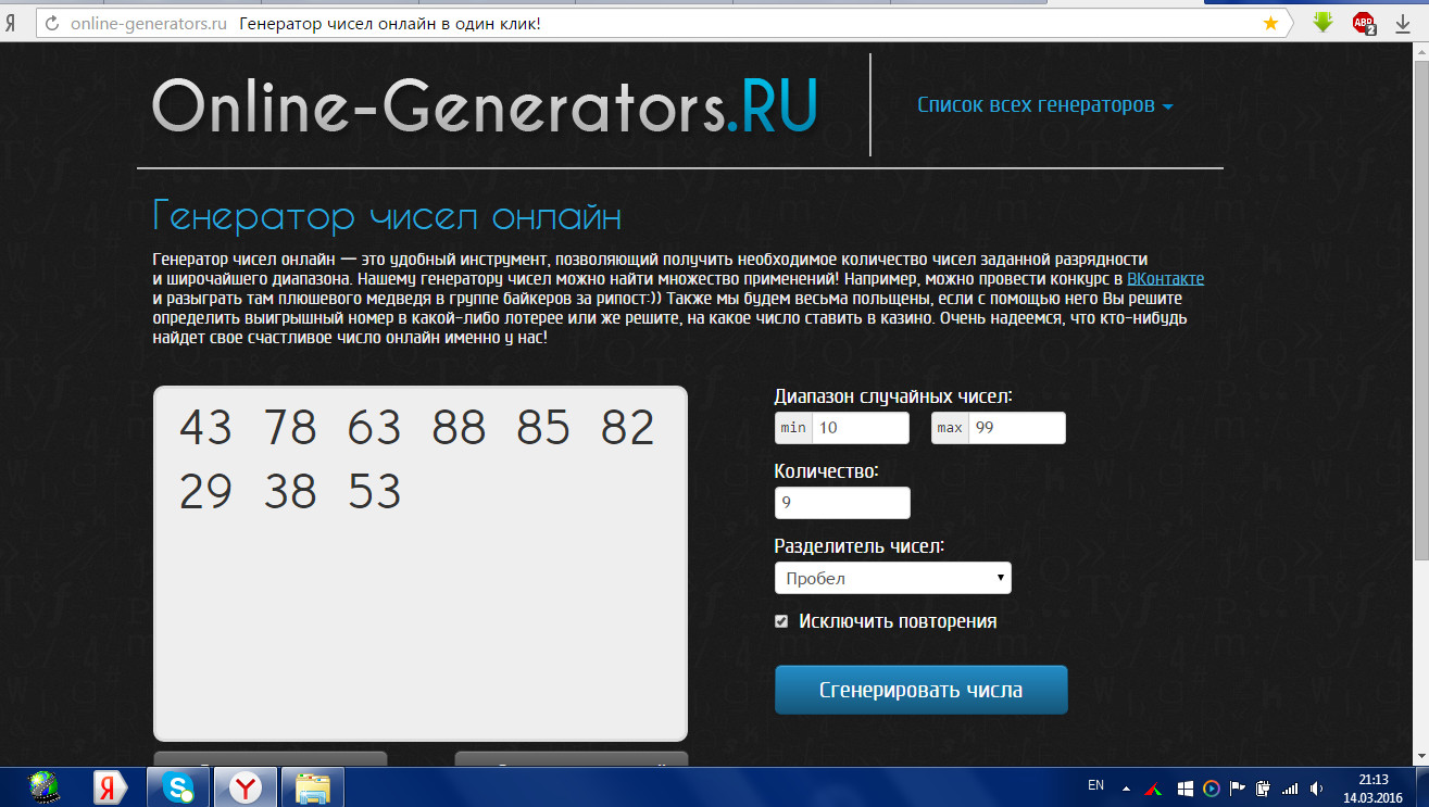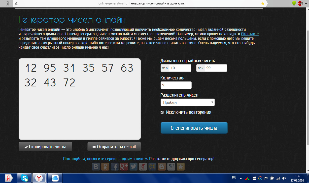 Каждую неделю или раз в две недели (зависит от активности пользователей) я буду генерировать 9 двузначных чисел и выкладывать на сайте скриншот с этими числами.